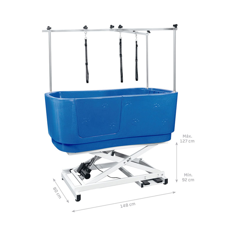 Elektrická modrá zastřihovací vana je vybavena vnitřní vyjímatelnou přepážkou, kterou lze flexibilně nastavit podle velikosti mazlíčka. Usnadňuje koupací provoz malých domácích mazlíčků, zabraňuje malým domácím zvířatům panikařit ve velkých vanách a také snižuje plýtvání vodou. Kromě toho je vana vybavena konstrukcí vodorovné tyče, která dokáže fixovat polohu domácího mazlíčka, zabránit tomu, aby se mazlíček potýkal, a umožnit ošetřovateli soustředit se více na ošetřovací operace a zlepšit efektivitu práce.