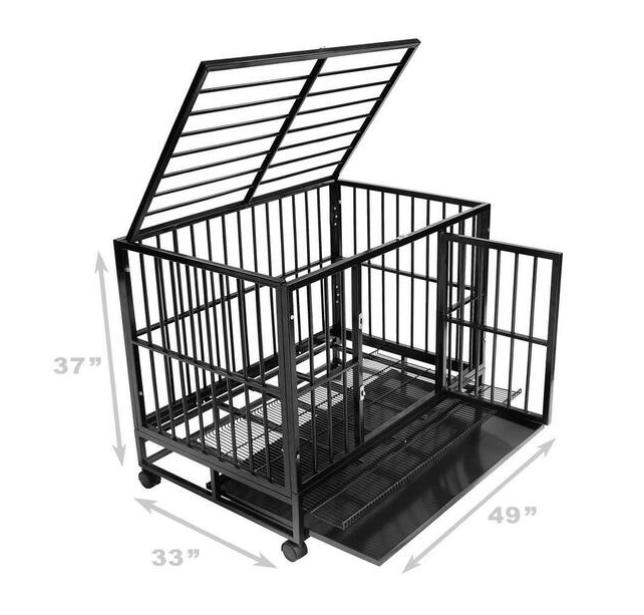 Prémiová konstrukce: Odolná, robustní přepravka pro domácí mazlíčky vyrobená z komerční oceli, profesionálně zkonstruovaná tak, aby zajistila bezpečnost zvířat, pohodlí a dlouhou životnost. Klec je vybavena 3/4palcovým rámem vyztuženým svařovanou ocelovou trubkou o průměru 1/2 palce (20 gauge), která poskytuje komplexní pevnost a odolnost odshora dolů.