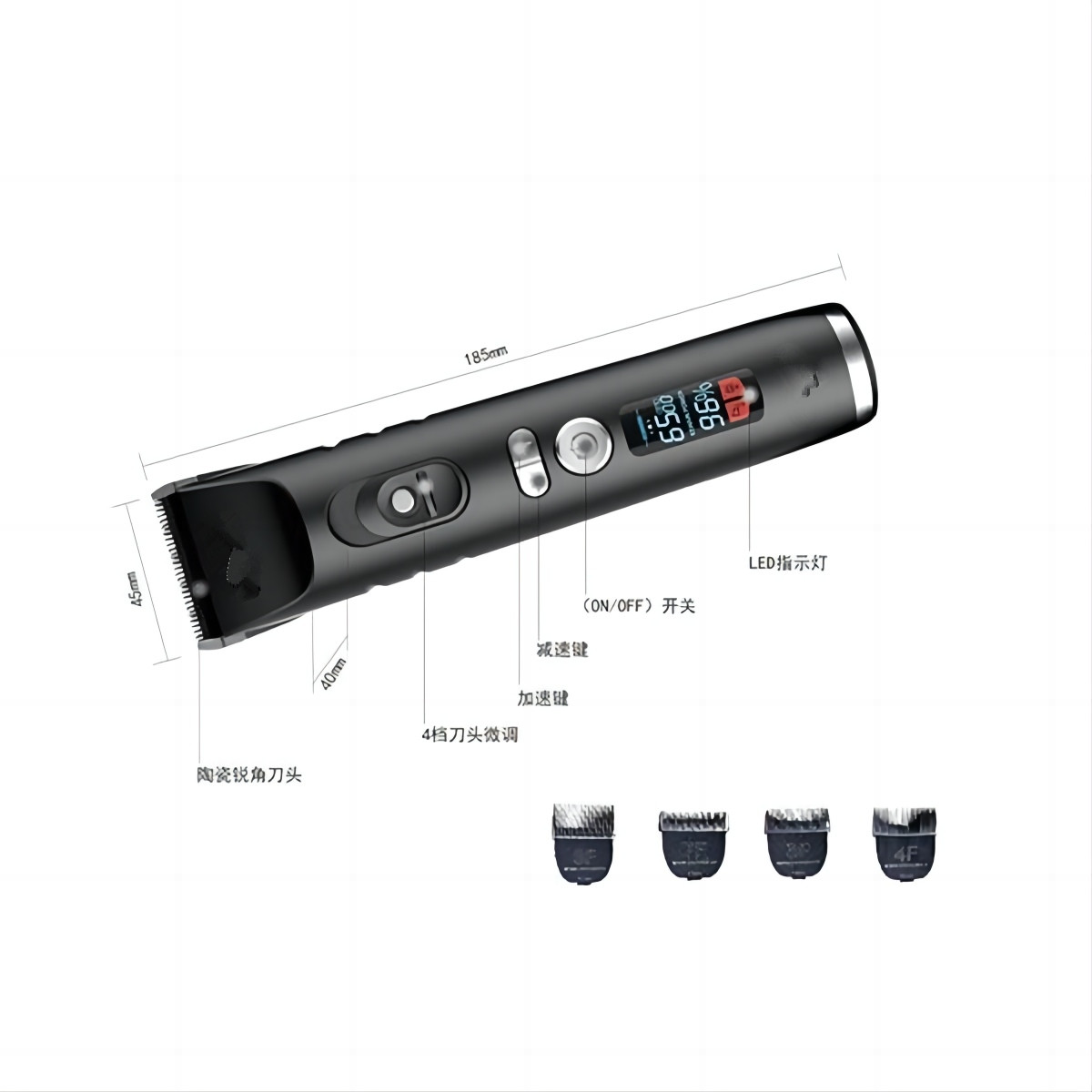 • LED obrazovka s vysokým rozlišením zobrazuje úroveň nabití baterie v reálném čase, čímž zabraňuje výpadkům napájení během péče a zajišťuje hladší domácí péči nebo služby salonu.